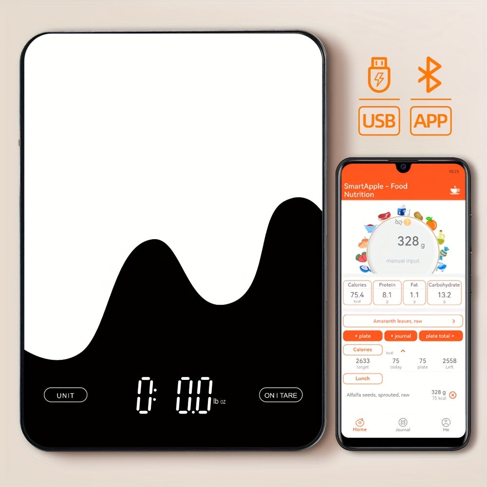 1pc Smart Digital Food Scale with Nutritional Calculator - USB Rechargeable, Grams & Ounces, Ideal for Weight Loss, Keto, Macro, Calorie Tracking, Baking & Meal Prep, 0.1oz/22lb, Diet Management Tool | Modern Kitchen Scale |