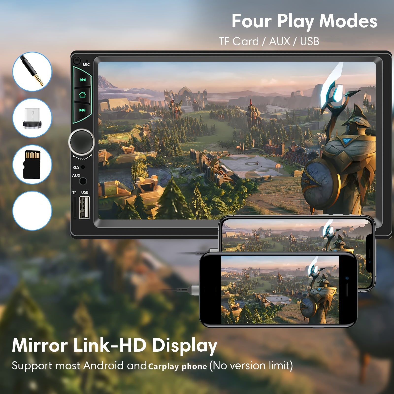 7 Inch Double Din Car Stereo Android Auto Carplay Car Radio HD Touch Screen Car Video Player With Rear View Camera Mirror Link Voice Control GPS Navigation FM/USB/TF/AUX Input, Car Accessories