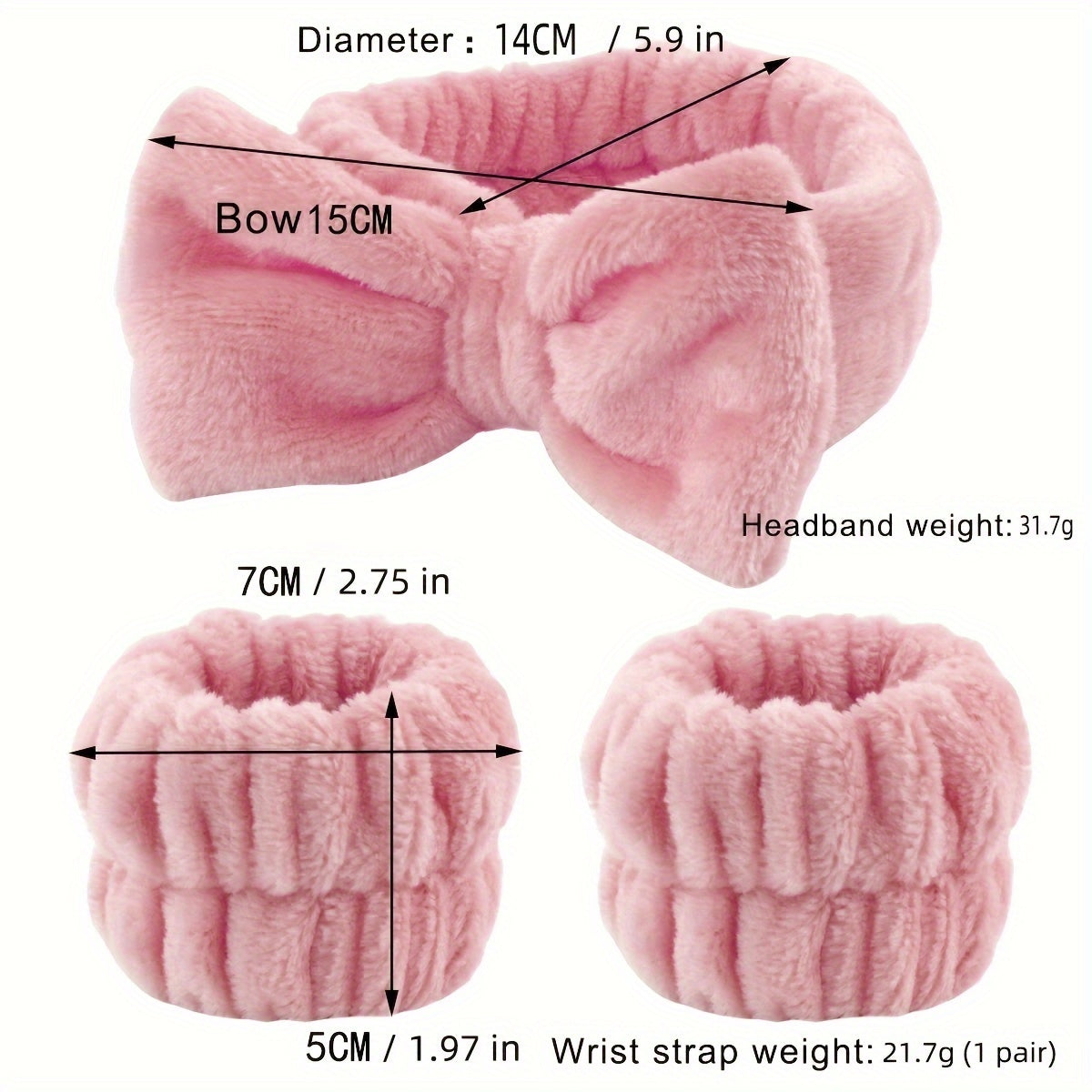 Item Details: Set of Headband and Wristband for Women's Face Wash, Makeup, and Exercise. Material: soft plush. Dimensions: Refer to image provided below. Weight: 54.8 grams. Includes: 3 items.