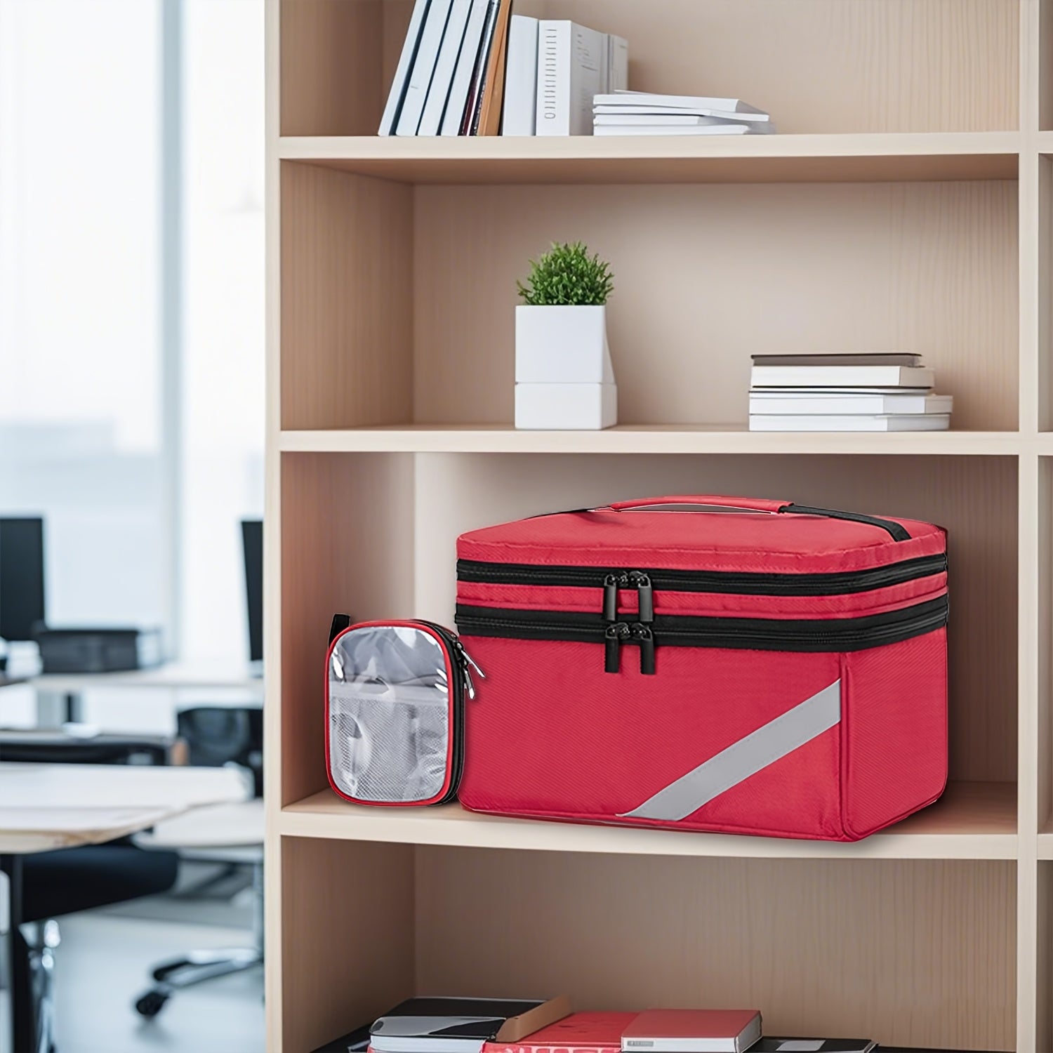The double-layer compartment offers additional storage and organizes medicine bottles based on their specific purposes. Additionally, this bag includes a small clear pouch for valuable items.