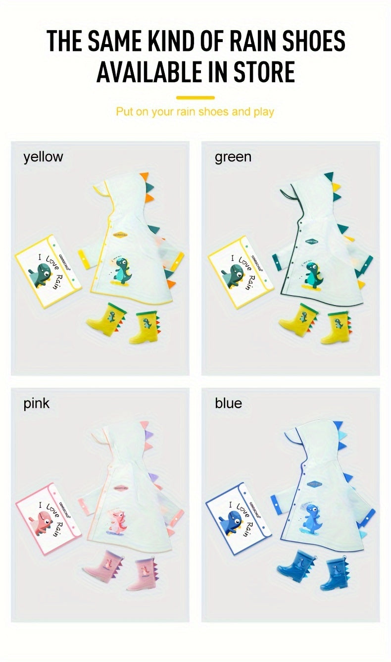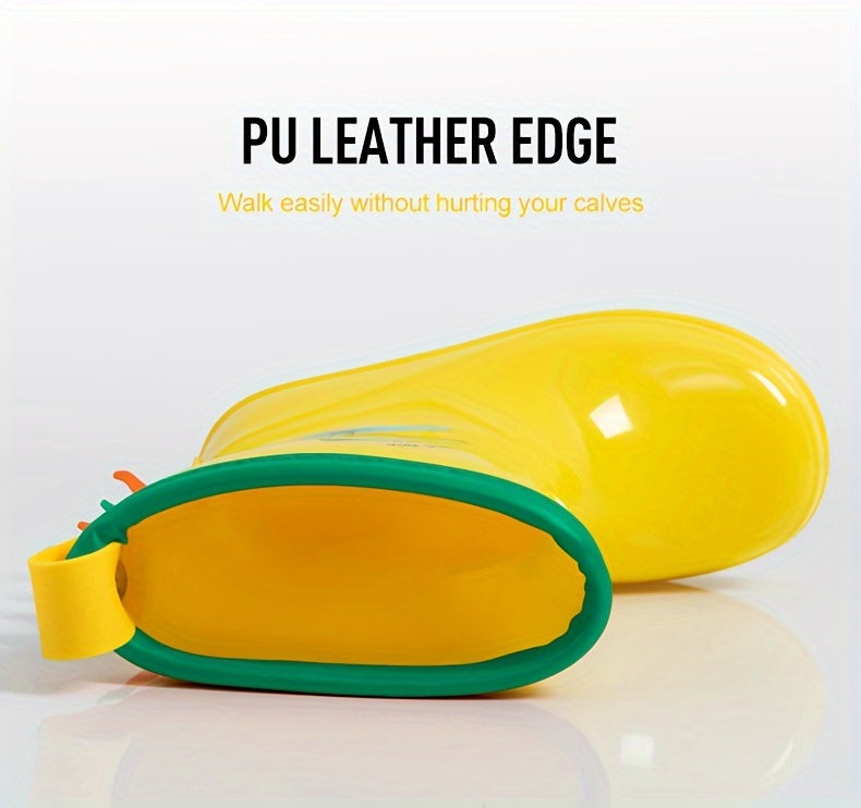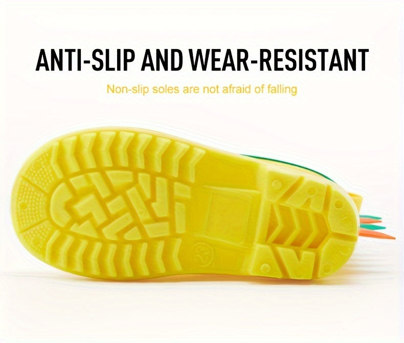 GentleChild Youngsters' Dinosaur Rain Boots - Waterproof, Anti-Slip, Mid-Calf Blue PVC Rain Shoes for Boys & Girls, Ages 1-8, with Cute Cartoon Design & Spikes for Enhanced Grip