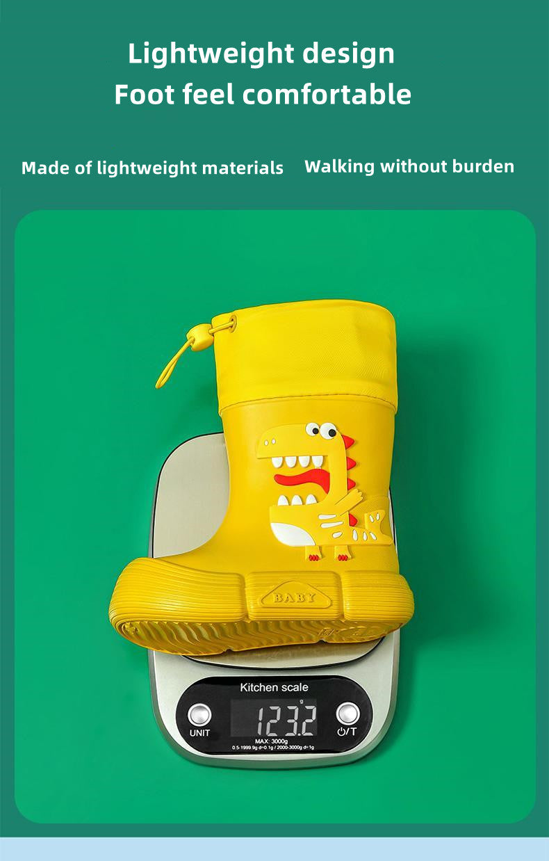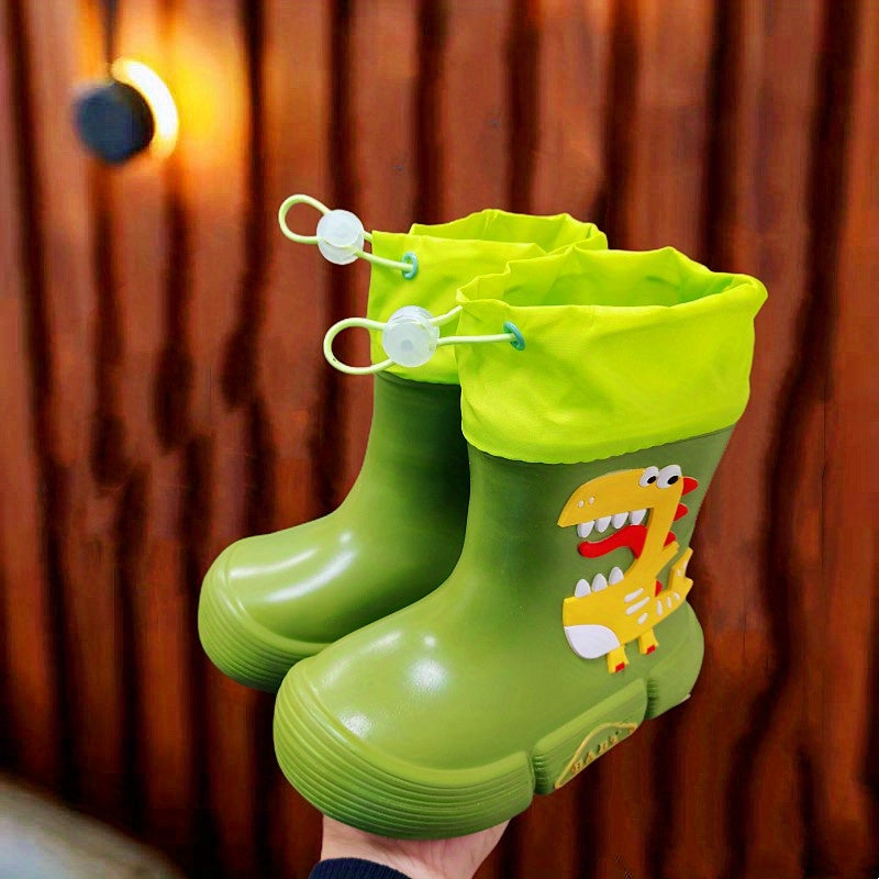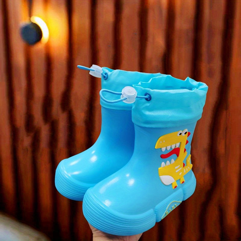 JIAGEYA Boys Girls EVA Drawstring Rain Boots, Cartoon Dinosaur Design Waterproof Soft Sole Anti Slip High Top Shoes For Rainy Weather