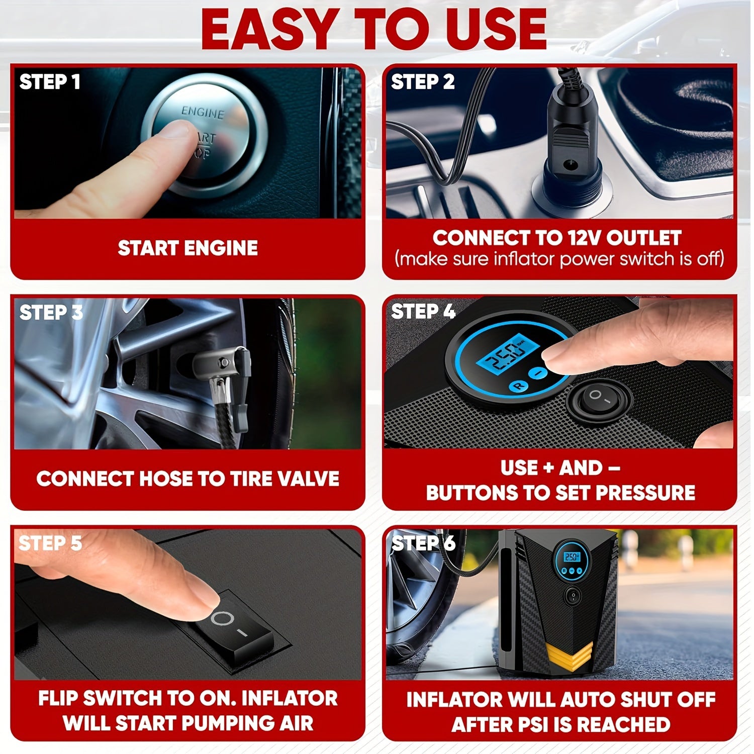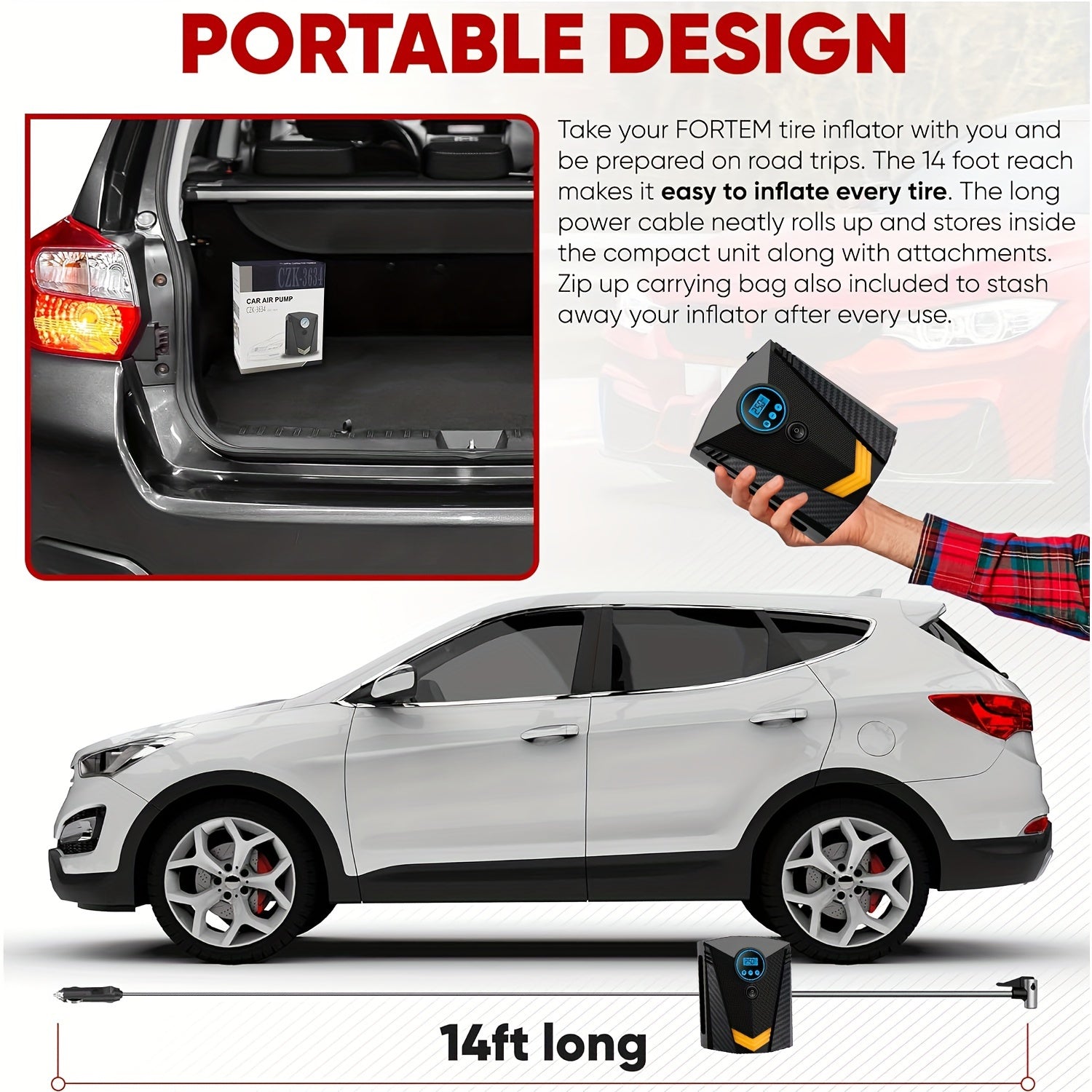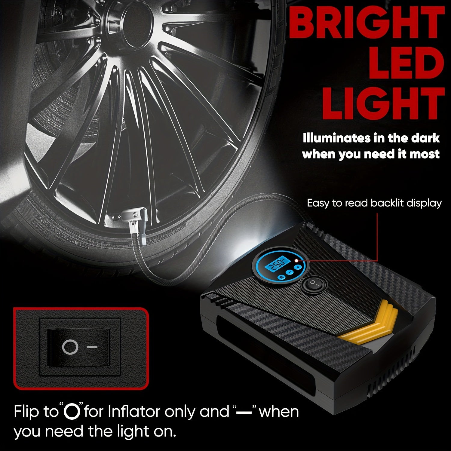 Tire Inflator Air Compressor 12V DC Portable Air Compressor Car Accessories Auto Tire Pump 100PSI With LED Light Digital Air Pump For Car Tires Bicycles Other Inflatables