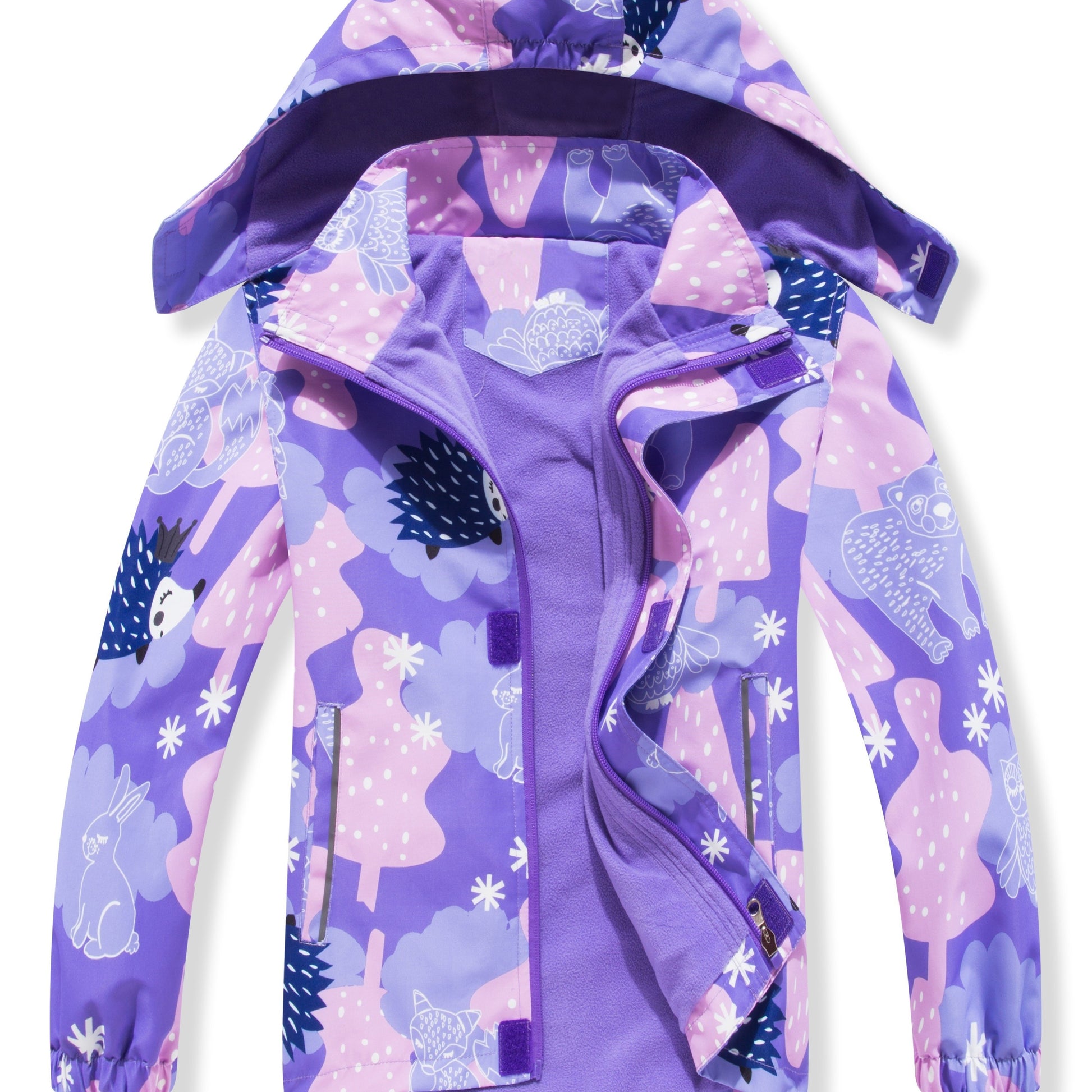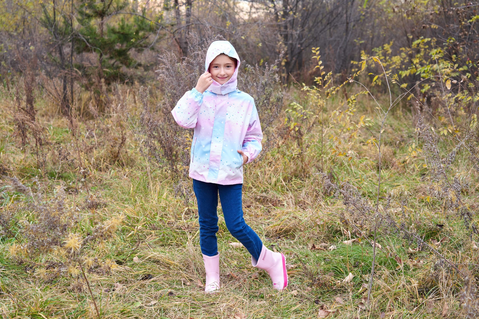 Vibrant Gradient Rain Jacket for Kids - Waterproof, Lightweight, Fleece Lined, Hooded, Windbreaker Coat with Removable Hood for Girls - Perfect for Outdoor Play and School Days